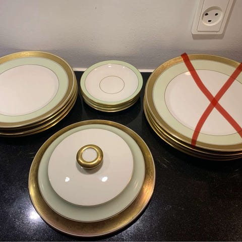 dagmar boullionkopper med undertallekner, hvide med guld. Der er 4 stk og prisen for alle 4 er 500 kr. de ser helt nye ud.