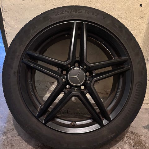 Fine Mercedes alufælge til A B C klasse 225x45x17 ET 52 med nye Continental premium contact dæk 6 mm mønster
