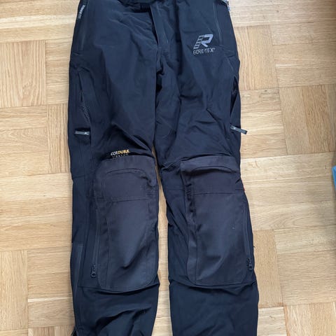 Rukka bukserne er som tidligere skrevet fine og velholdte, Rukka bukserne er lavet i slidstærk Cordura og er med den rigtige og ægte GoreTex membran som bevirker at du altid kan holde dig varm og ikke mindst altid tør, samtidig er Rukka bukserne med aftageligt inderfoer, samt naturligvis med fuld beskyttelse.