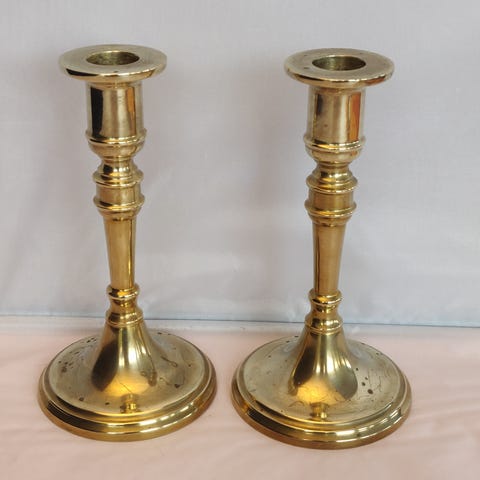 Jeg sælger to dansk håndlavet lysestager i messing.