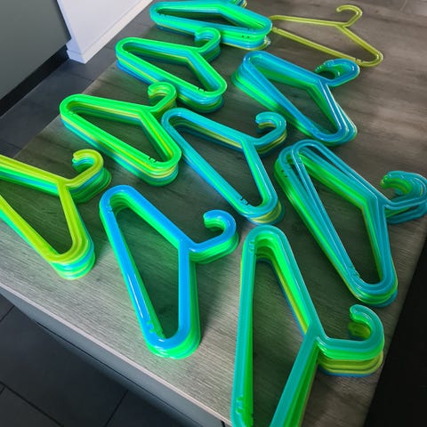 Der haves også bøjler i grønne nuancer samt gule/orange farver