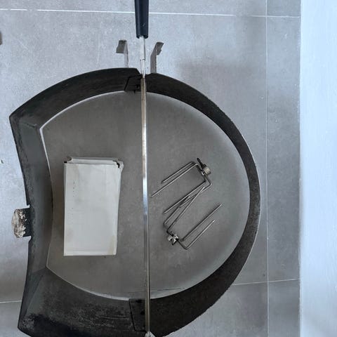 Bord med hjul og 2/3 fuld stor gasflaske medfølger.
