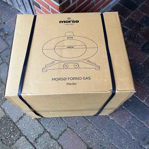Morsø Forno Medio gasgrill med indbygget termometer i låget og med rist i støbejern.