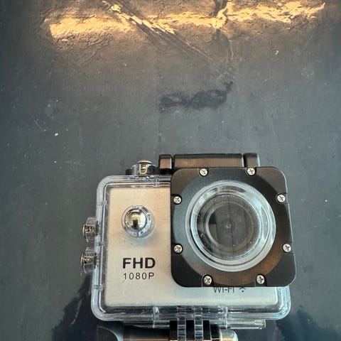 INF actionkamera 4K Ultra HD i sort. Kompakt kamera med vidvinkelobjektiv på forsiden og display på bagsiden til visning af optagelser og menuindstillinger. Kameraet har tilslutninger på siden til blandt andet opladning og dataoverførsel. Egnet til videooptagelse i høj opløsning og brug i situationer, hvor et lille og let kamera er praktisk, f.eks. sport og rejser.