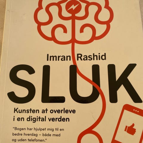 Imran Rashid "Sluk" bog på dansk. Paperback/indbundet udgave med undertitlen "Kunsten at overleve i en digital verden". Emnet omhandler digital adfærd, teknologi og dens påvirkning i hverdagen.