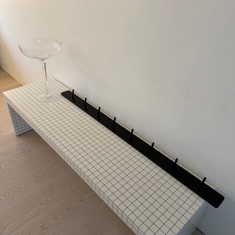 Lang knagerække med 10 knager fra Hübsch. Fås også i to mindre versioner med 3 eller 4 knager.
