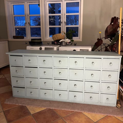 God opbevaring med 9 skuffer og 2 skabe — velegnet til stue, entré eller spisestue.