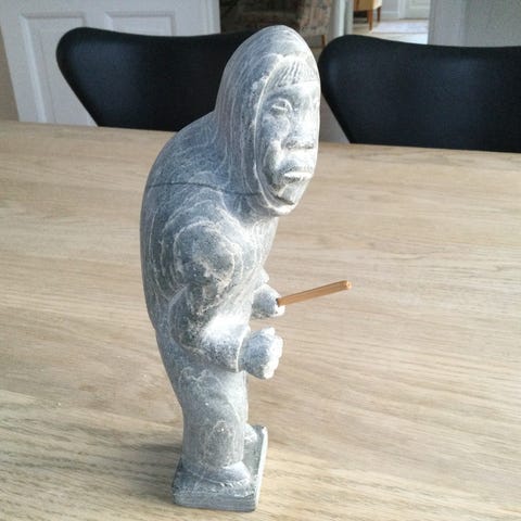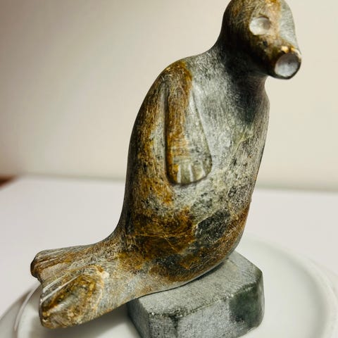 Meget flot og spændende ægte grønlandsk fedtstensfigur. Fabeldyr. Kunstner initialer. HV. Kender ikke navnet.