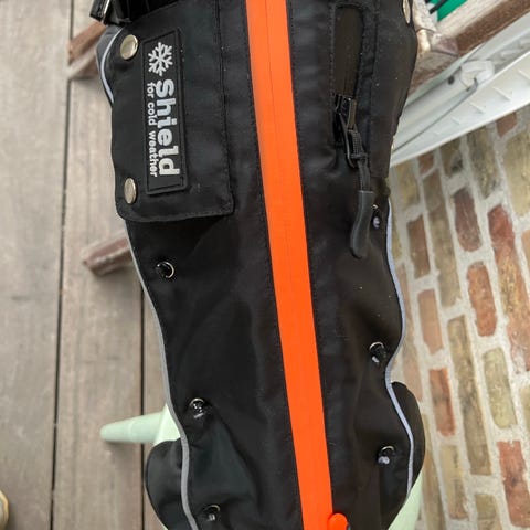 4Pets Shield hundejakke i sort med orange lynlås. Jakken har blød inderside og ydre i glat materiale. Udstyret med justerbare snore og spænder langs siderne for bedre pasform omkring hundens krop. Åbning ved hals og bagtil, så jakken kan tages af og på via lynlåsen foran. Velegnet som beskyttende overtøj til hunde i køligt vejr.