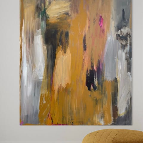 Abstrakt maleri i grønne og rosa nuancer🤎