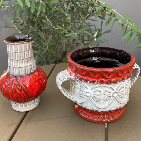 Keramik, Vase og urtepotteskjuler, West Germany, Smuk skjuler med varm glød H 12 Dia 14 75kr