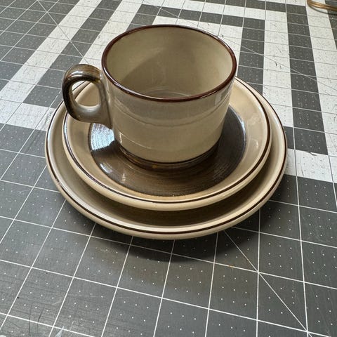 Stentøj, Kaffekop nr 305 Colombia, Bing & Grøndahl, 5 Kaffekopper nr. 305, 7 underkopper nr. 305 og 1 fløde / mælkende nr. 303 designet af Jens Harald Quistgaard for Bing og Grøndahl sælges samlet for 130,00 kr. Det hele er i 2. sortering.