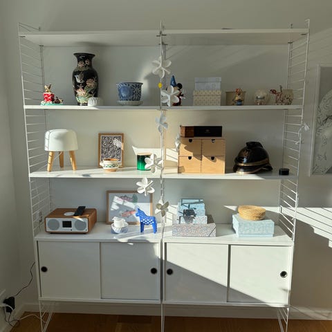 Fin string reol i hvid. Almindeligt slid fremgår.