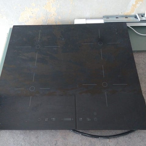 Kogeplade med spotinduktion og emhættefunktioner, bruges næsten overalt med æske, bog osv.