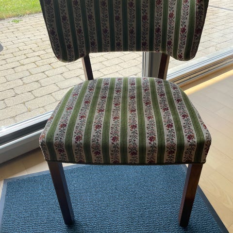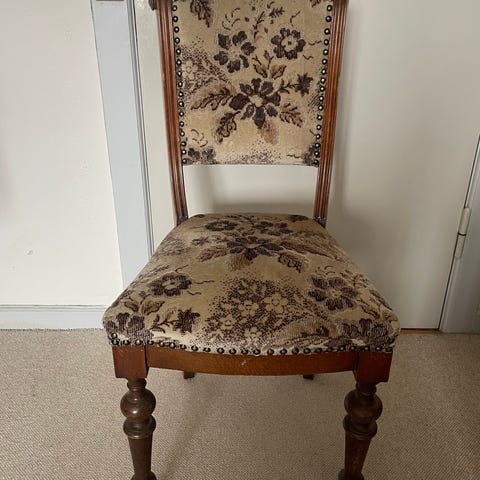 Gammel stol men i stand stand med intakt stof. Har dog nogle få pletter