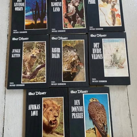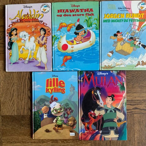 Walt Disney dyrebøger børnebøger samling med titlerne "Perri og hendes venner", "Den tumpede hvalp", "Tornerose", "Jens og gårdens dyr", "Tigermis på eventyr" og "Lille kikkemis". Bøgerne er illustrerede og egner sig som højtlæsning eller selvlæsning for børn. Trykt som hardback-udgaver med farveillustrationer på omslag og indeni. Velegnet til samlere af klassiske Walt Disney børnebøger eller som læsning for børn, der kan lide historier om dyr og eventyr.