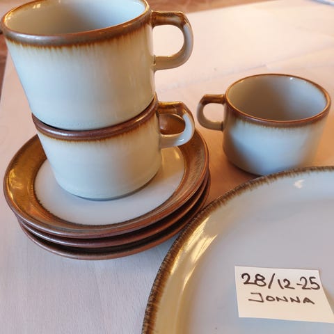 Sæt med kopper, kande og tallerkener.