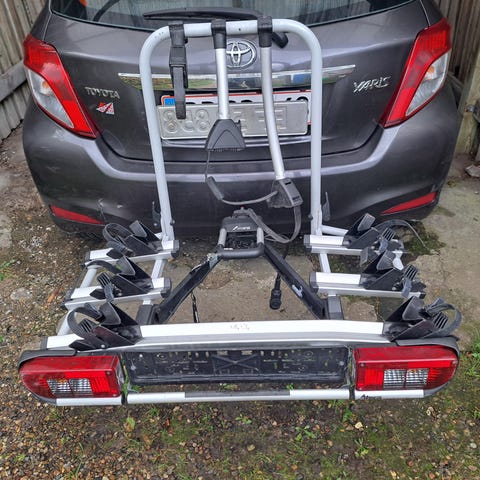 Supersmart cykelholder som kan bære 3 cykler. Der kan tilkøbes en holder således den kan rumme 4 cykler, den har vi ikke..