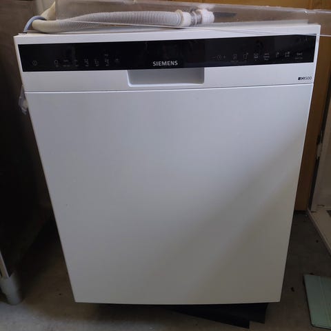 Hvid smal Model 45 cm bred. Er stadig tilsluttet hvis man vil se den køre. SR45ZW09MS
