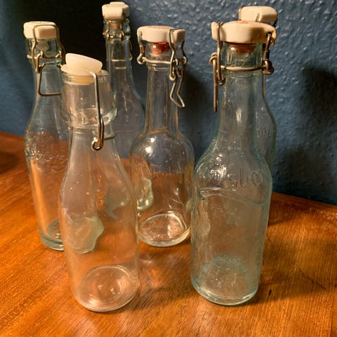 Patentflasker, bl.a. sodavandsflasker og mælk/fløde flasker med låg.