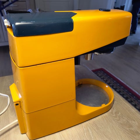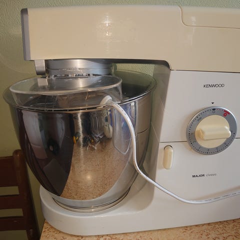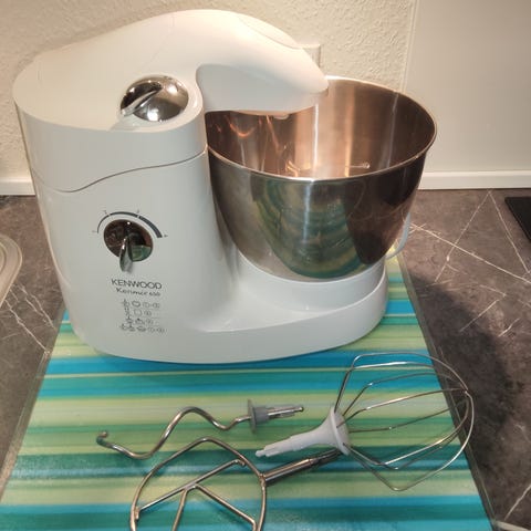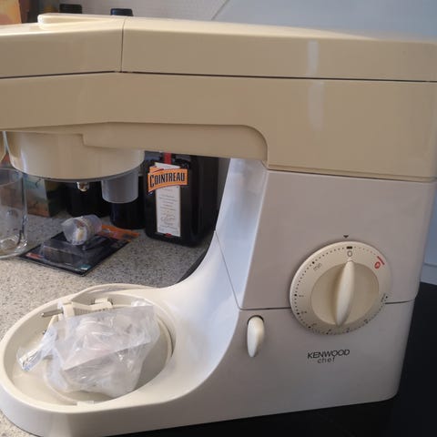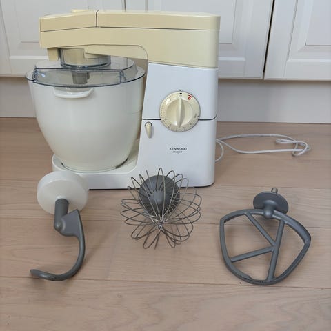 Retro Kenwood håndmixer (A345) i orange og blå plast. Modellen har to piskeris og ledning med stik til almindelig stikkontakt. Klassisk, kompakt håndholdt mixer til daglig madlavning og bagning. Måler 17x12 cm. Funktionsdygtig.