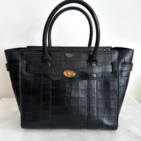 En moderne klassiker i en smuk, dyb grøn nuance. North South Bayswater Tote er den høje og mere arkitektoniske fortolkning af den ikoniske Bayswater, skabt til dig der ønsker den samme elegance, men med en mere vertikal og nutidig silhuet. Heavy Grain-læderet har en blød og levende struktur, som kun bliver smukkere med tiden. Tasken fremstår næsten ubrugt og har stadig plastik på flere dele af hardwaren. De lette, lige folder fra opbevaring vil rette sig ud ved brug. Tasken lukkes med den ikoniske Postman’s Lock foran. Indvendigt finder du ét stort hovedrum med suede-for samt en praktisk sidelomme. De to lange skulderstropper gør den komfortabel at bære over skulderen, også med overtøj. En oplagt hverdags- og arbejdstaske med god plads til både computer og det nødvendige. North South-modellen blev lanceret som en nyere tilføjelse til Bayswater-familien for at imødekomme ønsket om en mere strømlinet og moderne form, uden at give slip på de klassiske Mulberry-detaljer.