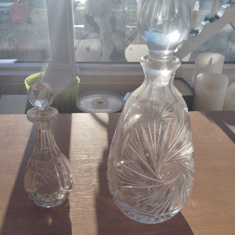 Andet, flakoner imellem tallerkner, 10 stk. søde ca. 18 cm målt bredeste steder,