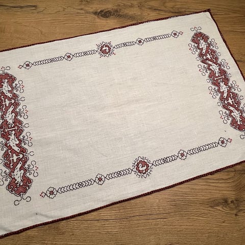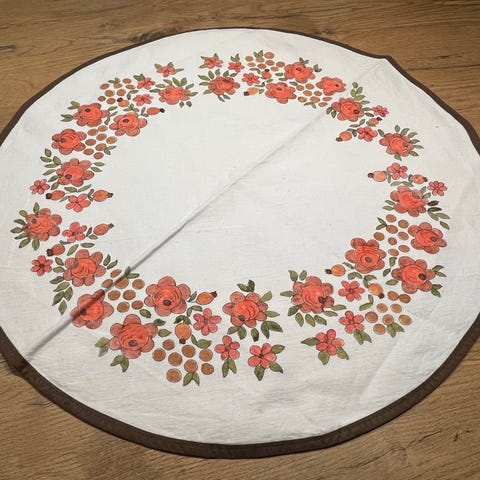 Ægte vintage tryk til brødkurven. Brugt, så der kan forekomme kaffepletter og mindre skader, huller og slid, så se venligst alle billeder for stand. Kan bruges som den er, men kan måske også bruges til noget kreativt krea projekt?