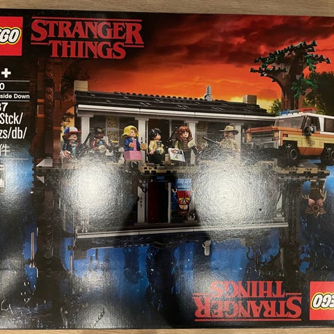 Stranger Things The Upside Down Lego set. Unfortunately, the box and building manual have been lost, but the set itself is in good condition and all minifigures and pieces are included. The set is packed in a regular cardboard box for easier transportation.