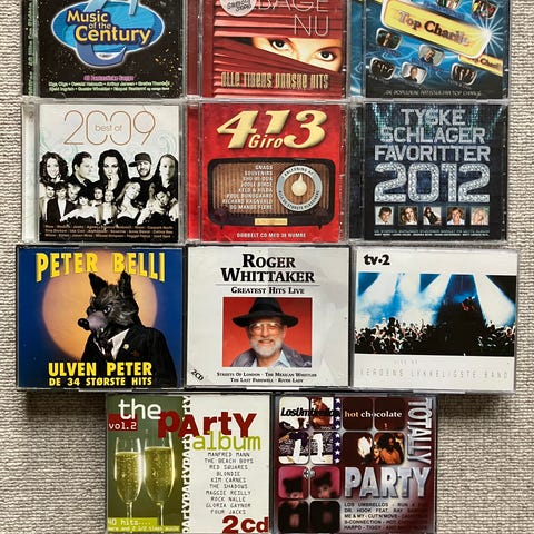 Brugte cd'er i god stand. Ca. 65-70 stk. Der er lidt flere end på de viste billeder. Du kan også købe dem enkeltvis for en femmer stk. Sendes ikke da jeg sælger dem for min mor