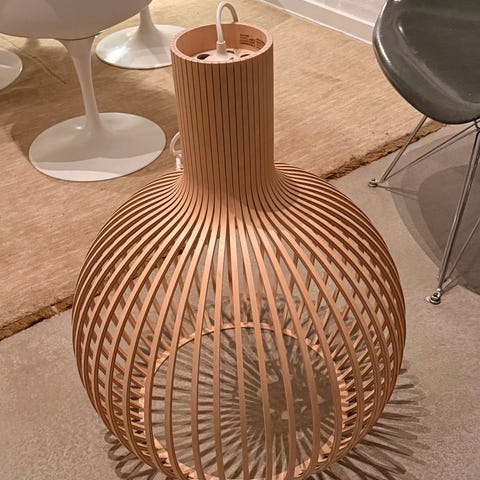 Sælger en smuk Octo Small 4241 pendel fra finske Secto Design. En ikonisk designlampe i formspændte trælameller designet af Seppo Koho. Lampen giver et varmt, eksklusivt lys og er både belysning og designobjekt i ét.