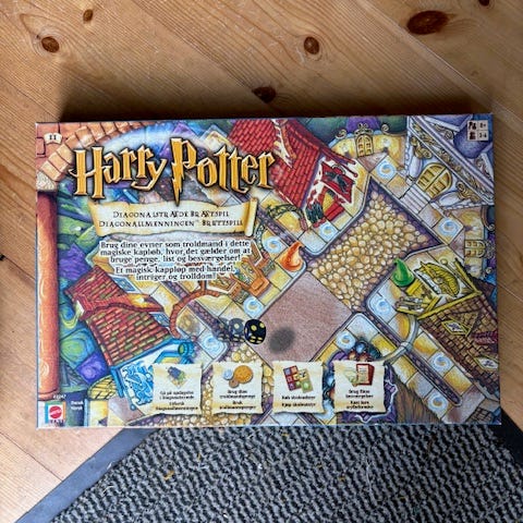 Klassisk Monopoly spil i en Harry Potter version med spilleplade inspireret af universet fra bøgerne og filmene.