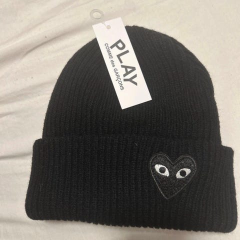 Comme des Garçons Play hue i sort. Strikket model i 100 % bomuld i one size.