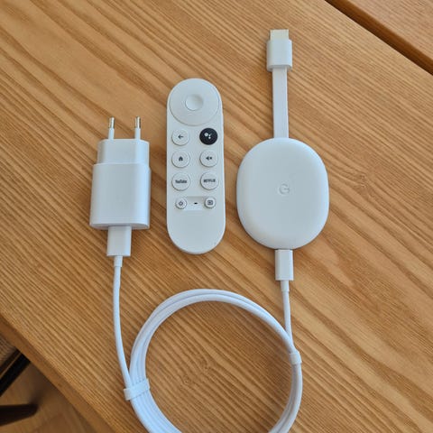 Chromecast med Google TV HD, brugt og i stand som ny, passer til alle tv med HDMI indgang, virker perfekt, med original fjernbetjening samt original strømforsyning og original ledning, Wifi 2,4 GHZ og 5 GHZ, modellen hvor man med fjernbetjeningen tilgår Google Play Butik og installerer apps på den måde, virkelig mange muligheder med forskellige apps - blandt andet Norlys Play, Netflix, TV2 Play, DR1, Prime, Disney, Apple TV, Spotify, VPN løsninger, internet radioer og mange mange andre, testet på LG Oled C5 og Sonos ARC Ultra og der står alt man afspiller knivskarpt og med perfekt lyd, fra røgfrit hjem, nulstillet og klar til ny ejer.