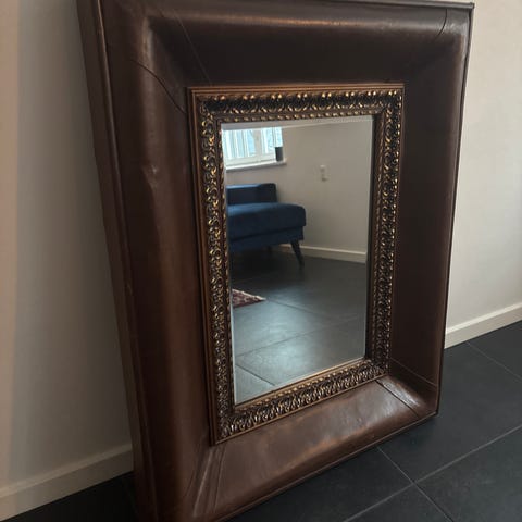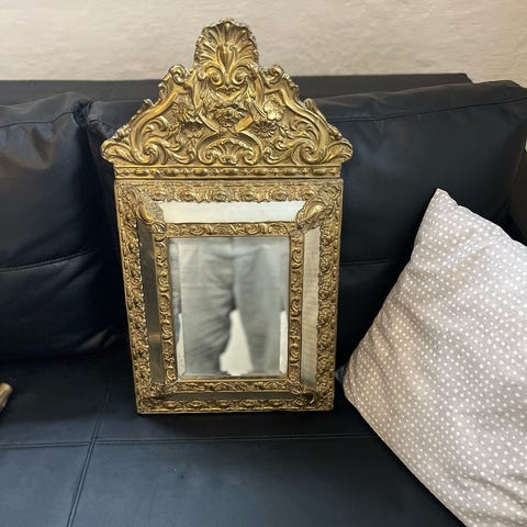 Meget gammelt spejl lavet af en møbelsnedker