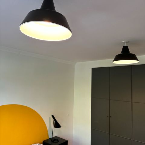 6 stk. Nymalede originale Louis Poulsen værkstedslamper