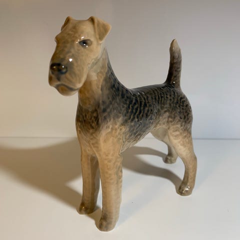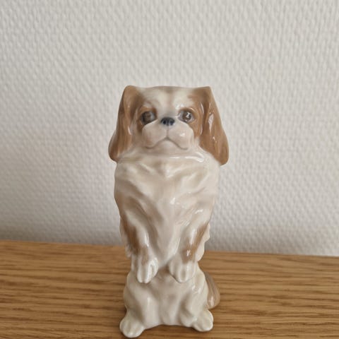 Royal Copenhagen hundefigur i porcelæn. Figuren forestiller en siddende hundehvalp mops / bokserhvalp.