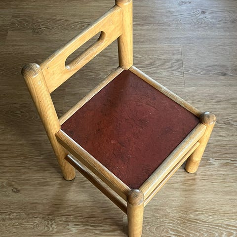 Fagus børnehavestole, et klassisk dansk design fra 1970'erne, kendt for deres robuste konstruktion og holdbarhed.