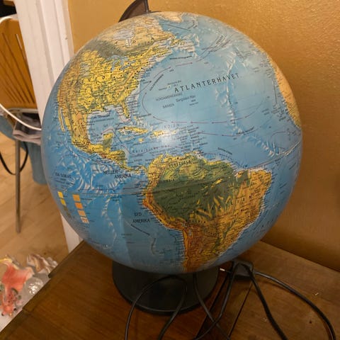 Globus på fod, produceret i 1970’erne. Fremstår i om. Stand. Uden lys.
