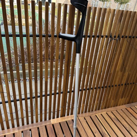 2 Krykker med gummihåndtag. Kan justeres så de passer til 9 højder. Maks 140 kg