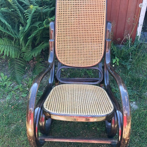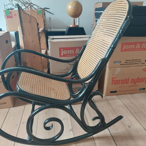 Giv dit hjem et strejf af tidløs charme med denne fantastiske vintage gyngestol fremstillet af patineret bøjet træ, et sandt mesterværk af håndværk fra svundne tider. Denne stol er fremstillet i Taiwan, hvilket det originale mærke vidner om, og kombinerer kvalitetskonstruktion, klassisk elegance og uovertruffen komfort.