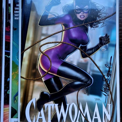 Lot på 3 engelsksprogede signeret tegneserier i Very High grade (TTB), Storm 2 signeret af Szerdy, Catwoman 56 signeret af Howard, Batman Gargoyle of Gotham 1 signeret af Grampa, med COA. Klik på den blå "gå til varen" knap, for at købe eller byde på denne vare. Den samlede pris vil blive vist inden du afgiver dit bud.