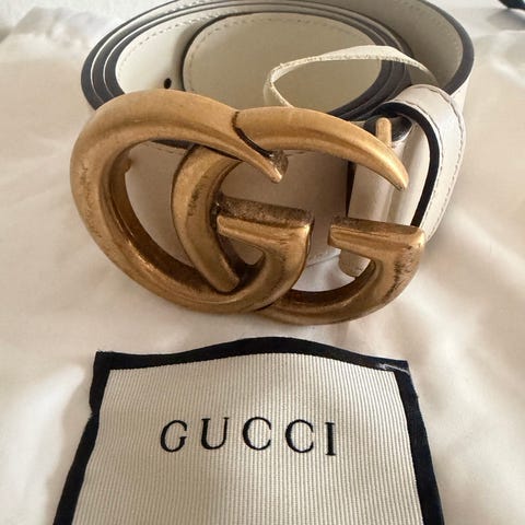 Gucci bælte reversibelt model 1973, størrelse 70/28, i meget god stand, lavet i Italien, sort læder på den ene side og rosa på den anden, gyldent metalspænde med GG-monogram, samlet længde 85 cm, bredde 4 cm. Klik på den blå "gå til varen" knap, for at købe eller byde på denne vare. Den samlede pris vil blive vist inden du afgiver dit bud.