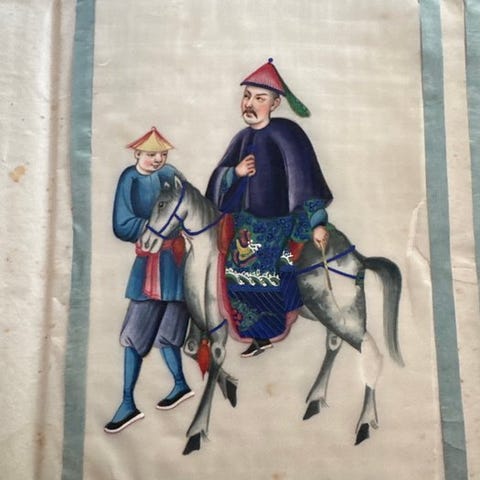 Silke maleri med titlen Painting of Idyllic Landscape with Figure fra Qing-dynastiet (1644–1911) i Kina, størrelse 36 × 29,5 cm (47 × 37 cm indrammet), i god stand, indrammet og med glas. Klik på den blå "gå til varen" knap, for at købe eller byde på denne vare. Den samlede pris vil blive vist inden du afgiver dit bud.