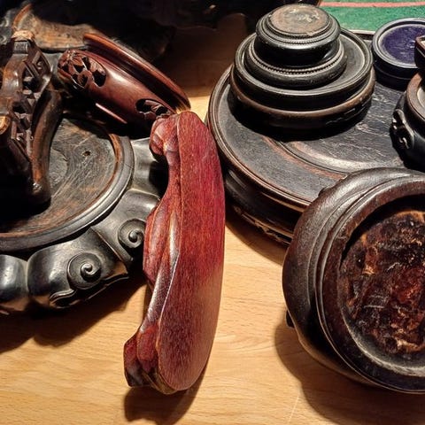 Et monumentalt lavt buffetbord i massivt træ (formentlig kinesisk elm – yumu), dækket af en traditionel rød lak med en dyb og autentisk patina. På grund af sine sjældne dimensioner og dets dokumenterede institutionelle brug står dette stykke som en samlergenstand på musealt niveau.