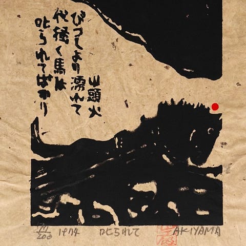 For forlaget Unsodo lavede han flere "vandmaleri-lignende" træsnit.
