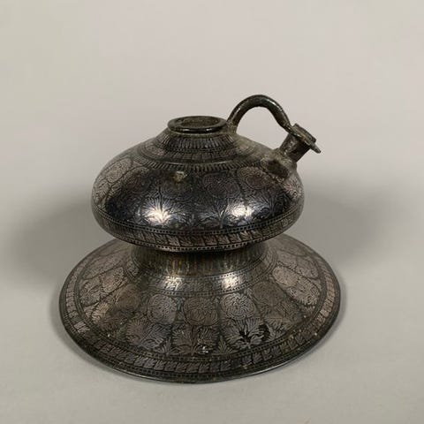 Narguilé-basen 'huqqa' med dekoration i 'Bidri' fra Deccan, det 18. århundrede.