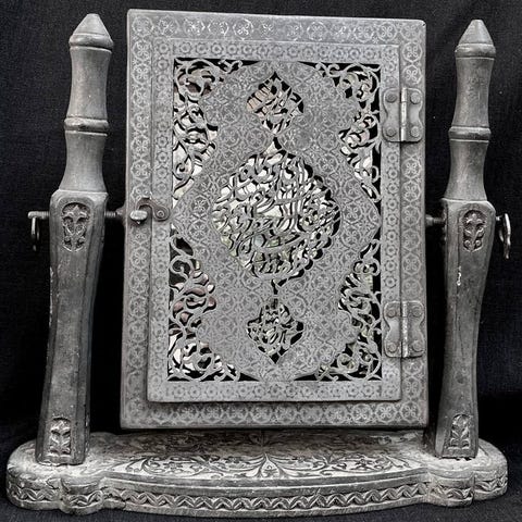 Et sølvkafesæt fra den osmanniske periode, med underskriften af sultan Abdulhamid II. Det er lavet af kostbart porcelæn med det russiske Kuznetsov-stempel. Boksen bærer det Osmanniske.