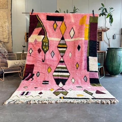Marokkansk Boujad-tæppe i naturligt uld – dristigt dekorativt statement til m...