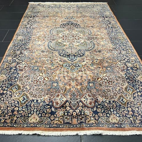 Dyk ned i den tidløse elegance af et antikt kaschmir Ghoum-orientteppich – håndknyttet med den højeste kunstfærdighed, fortæller det historier fra tidligere epoker og tilføjer dit hjem et strejf af orientalsk luksus. Dette mesterværk af håndværk fascinerer ikke kun gennem sin betagende farvepalette og detaljerede mønstre, men også gennem den kulturelle dybde, der er vævet ind i hver knude.